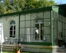 Inglese, lattoneria perimetrale decorativa. Realizzabile su misura, personalizzabile nei dettagli tecnici ed estetici. La struttura del giardino d’inverno si compone di profilati metallici e vetri.